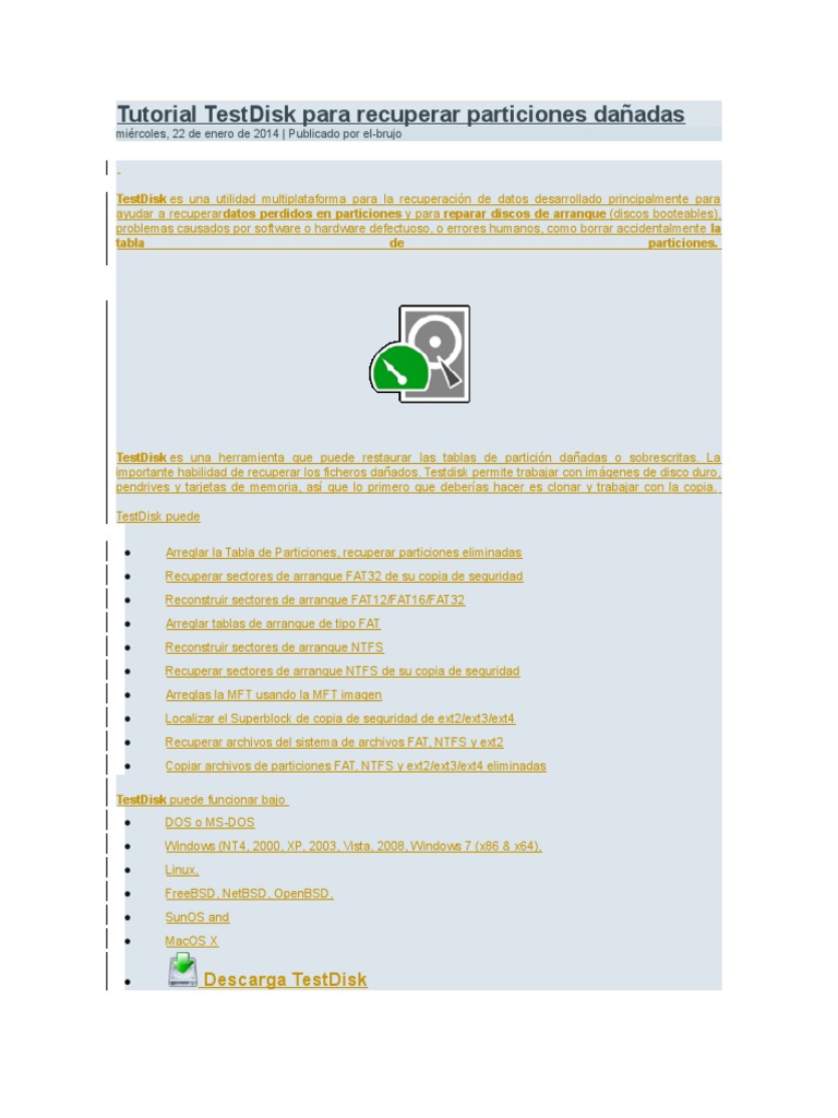 Tutorial Testdisk Para Recuperar Particiones Dañadasdoc